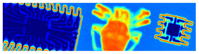 Cette technique s’appelle l’interconnexion par « bump bonding ». La Figure 3 illustre un module rectangulaire finalisé de 65 536 pixels hybrides. Ce module est composé de 2 ASICs de lecture et d’un seul capteur Silicium (pas de zone morte pour la détection). Chaque module fabriqué est ensuite inspecté aux rayons X pour s’assurer que toutes les 65 536 connections sont bien présentes (pas de bille manquante, pas de craquelure, etc). Il est important de savoir qu’à cette étape, il n’est pas rare de casser et endommager un grand nombre de modules. Enfin, une fois les modules fabriqués, ils sont inspectés en salle blanche à SOLEIL, avant de les reporter définitivement sur leur carte électronique.